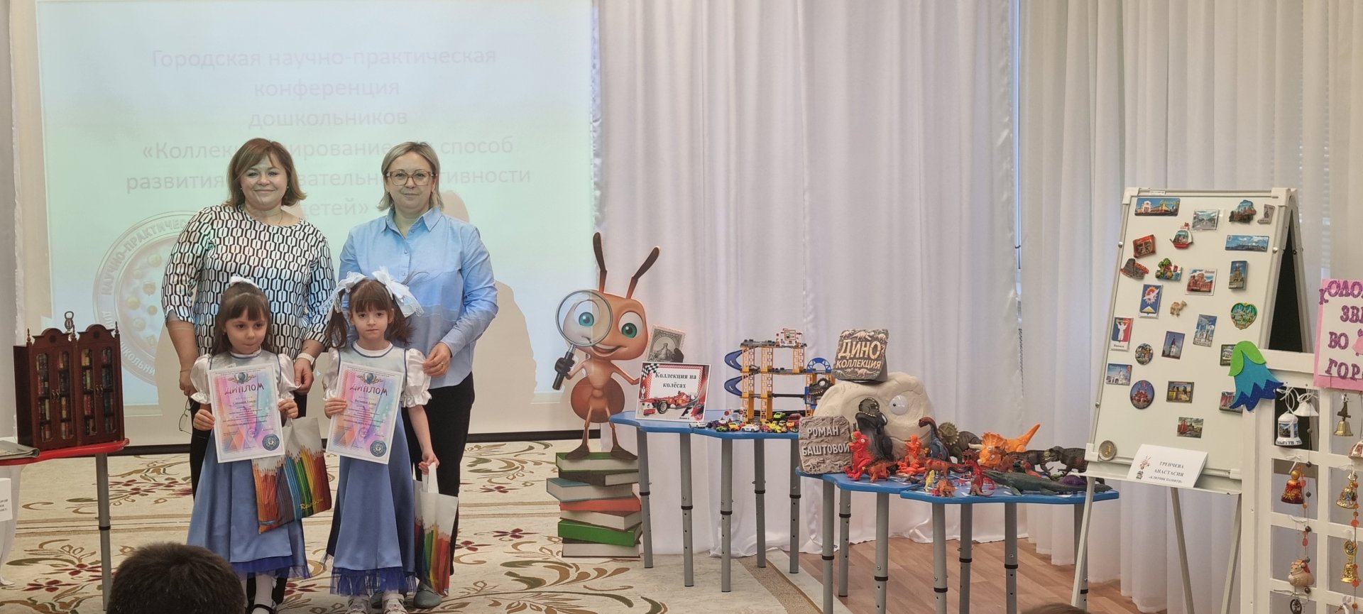 В МБДОУ «Детский сад № 96 «Капельки» состоялась городская научно-практическая конференция дошкольников «Коллекционирование как способ развития познавательной активности детей». В конференции приняли участие 8 воспитанников из МБ(А)ДОУ «ДС № 4, 81, 83, 92, 93, 96». Дети представили работы, рассказали о хобби.