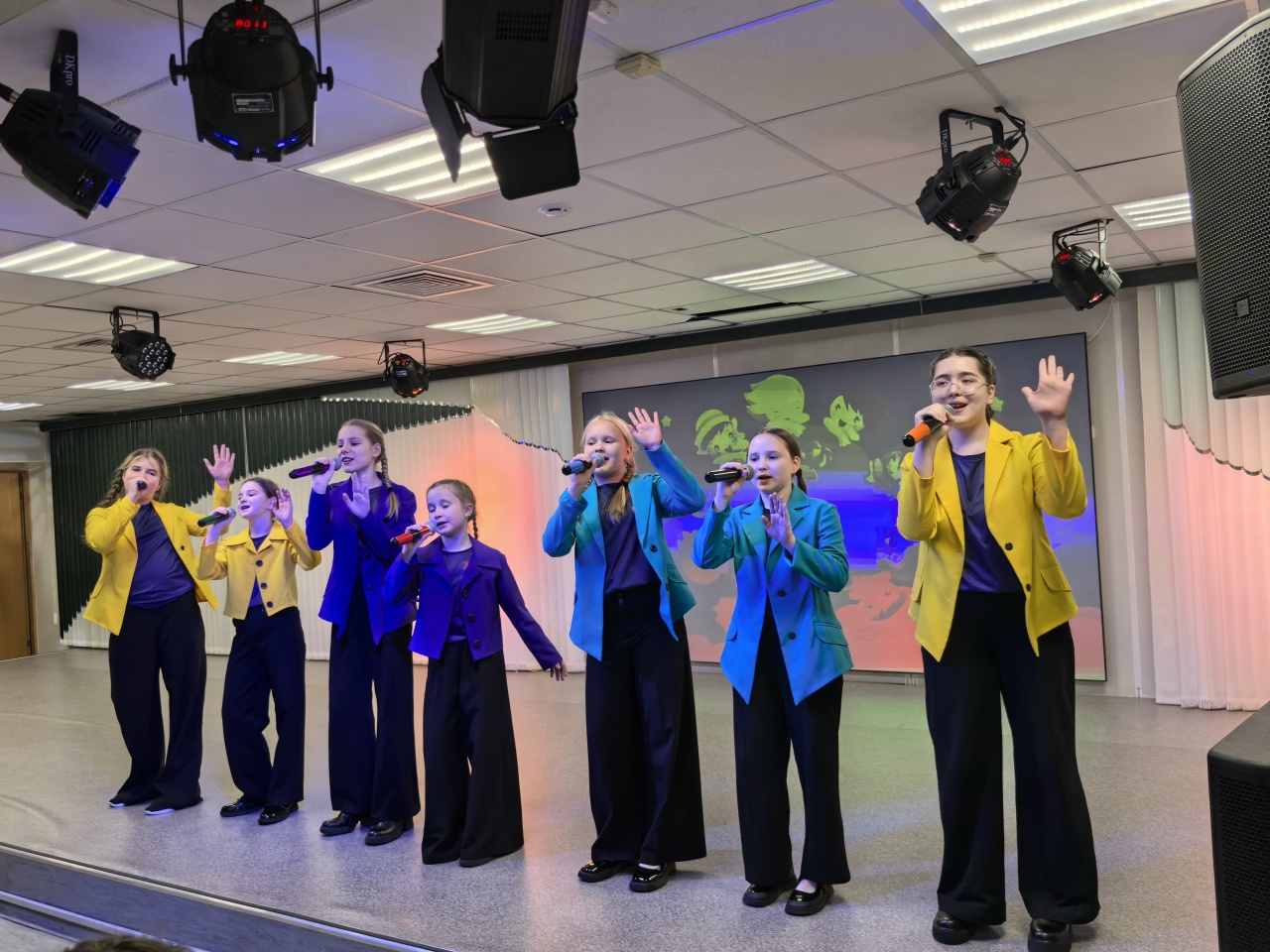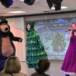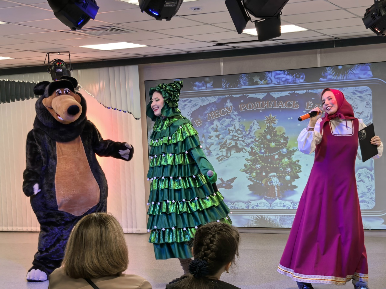 На сцене детей ждали знакомые герои — Маша, медведь и грустная Ёлка, новогоднее настроение которой зрители искали вместе с главными героями, по пути выполняя задания и просматривая творческие номера коллективов МБУ ДО «ЦВР».
