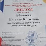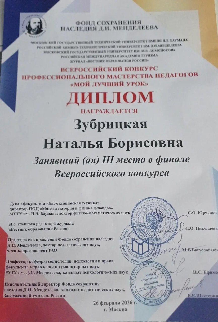 Учитель биологии МБОУ «Гимназия № 1» Зубрицкая Наталья Борисовна заняла почётное 3 место.