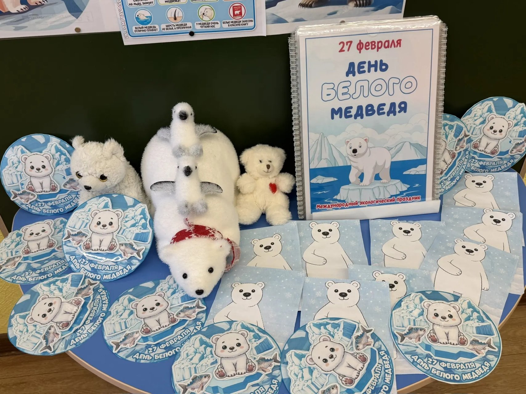 В образовательных учреждениях прошли квесты, конкурсы, игры, викторины. Ребята познакомились с ареалом обитания, образом жизни, рационом питания белого медведя, нарисовали открытки, изготовили аппликации и поделки.
